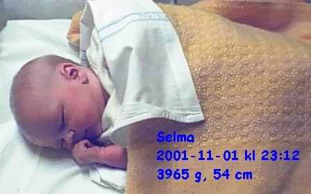 Selma är en liten tjej som föddes den 1 november 2001 på Danderyds sjukhus.
